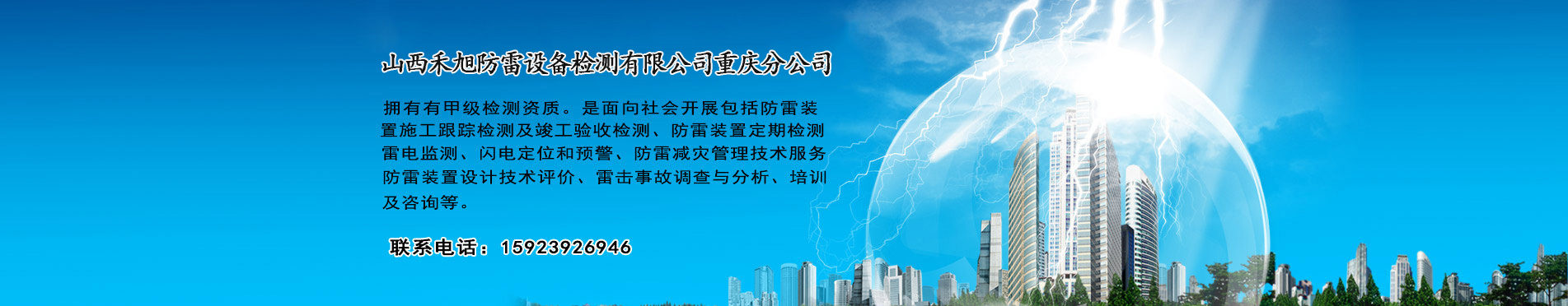 山西禾旭防雷设备检测有限公司重庆分公司拥有有甲级检测资质。是面向社会开展包括防雷装置施工跟踪检测及竣工验收检测、防雷装置定期检测、雷电监测、闪电定位和预警、防雷减灾管理技术服务、防雷装置设计技术评价、雷击事故调查与分析、培训及咨询等“十位一体”为主要内容的专业服务机构。公司以“防雷减灾 [ 了解更多 ]